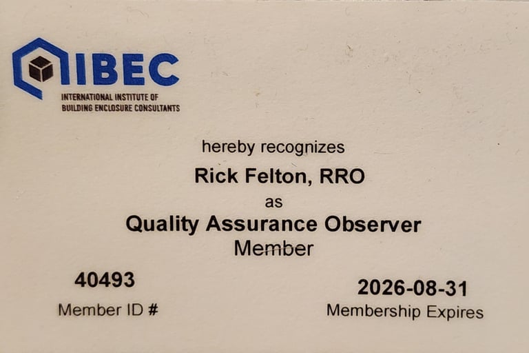 ·Registered Roofing Observer (RRO) # 1611 11-2013, to present