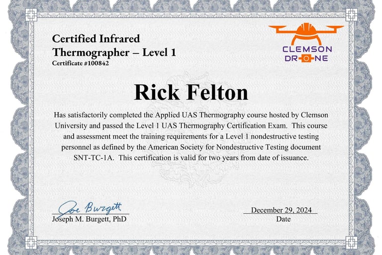·UAS (Drone) Thermographer 1 (Clemson University) 2024
