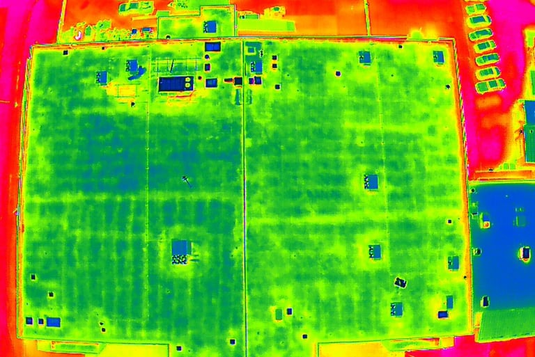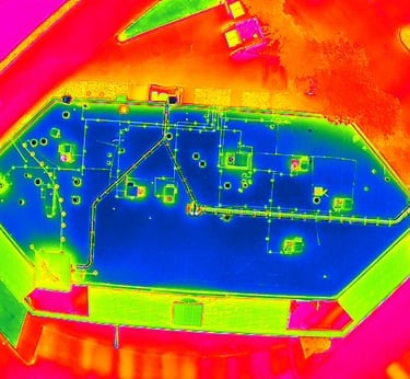 Visual photography and Infrared scanning to determine potential issues with commercial roofs and building envelopes.