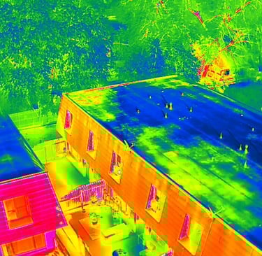 Visual photography, video and Infrared scanning to determine potential issues with commercial roofs and building envelopes.